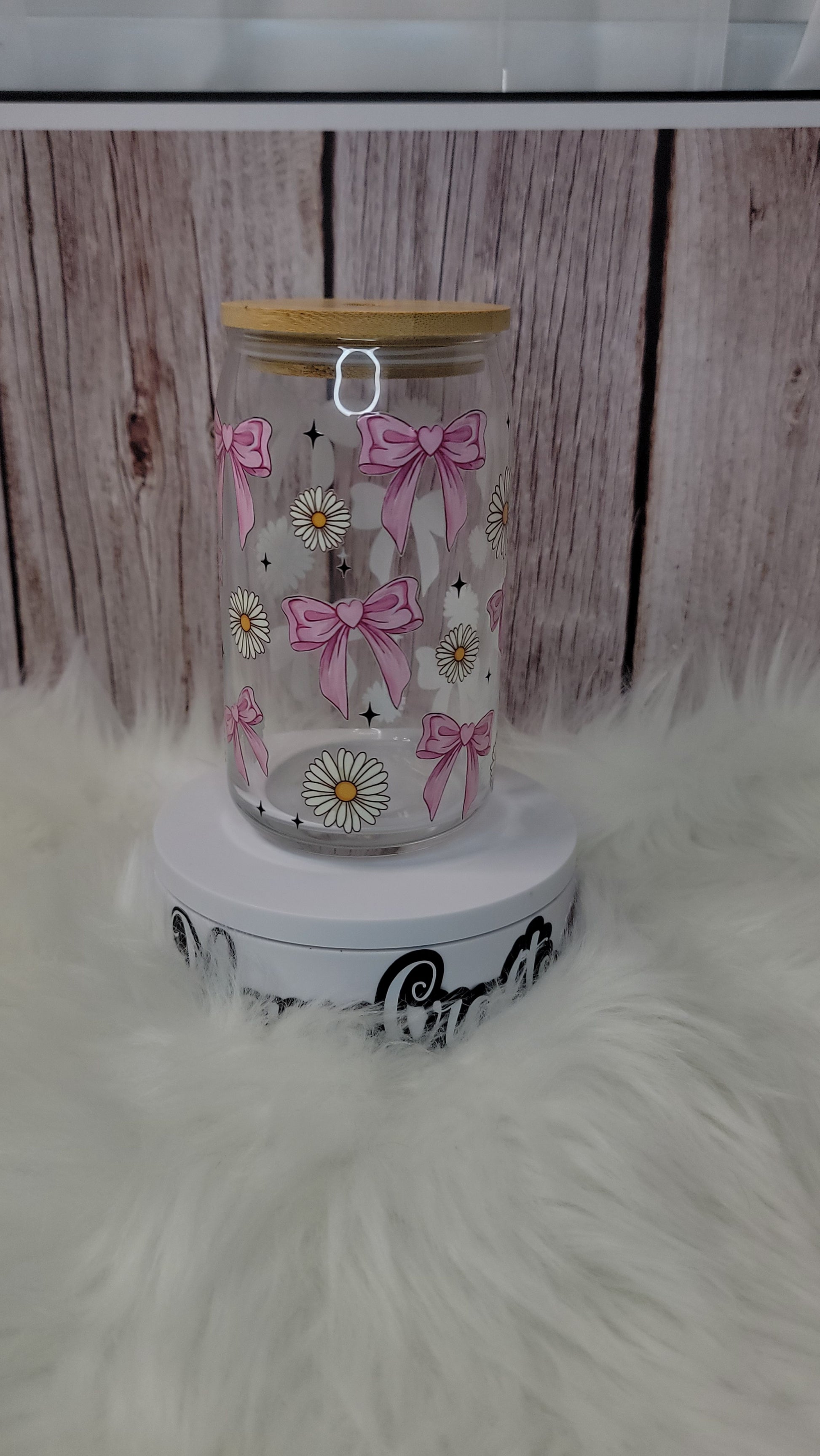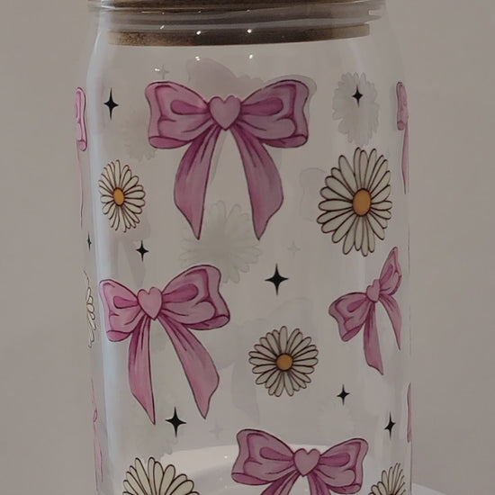 Coquette bows and flowers glass can 16 Oz | personalized | perfect gift.